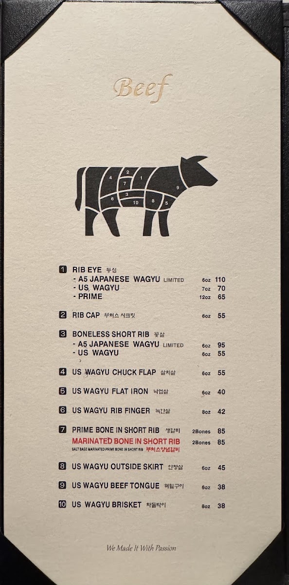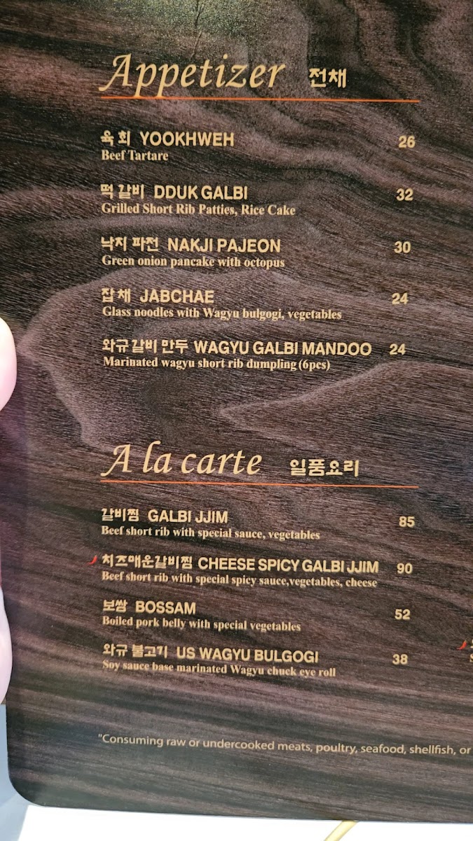 Indulge in a plethora of mouthwatering dishes that showcase the finest cuts of meat and rich flavors. The menu highlights include the DDUK GAL BI, delectable grilled short rib patties served alongside rice cakes for a satisfying start to your meal. Don't miss the WAGYU BULGOGI SOY SAUCE BASE MARINATED WAGYU (US$40), where succulent slices of wagyu chuck eye roll are marinated to perfection, delivering a luxurious flavor that melts in your mouth. You can also savor the BOSSAM (US$50), featuring tender boiled pork belly accompanied by a medley of special vegetables.